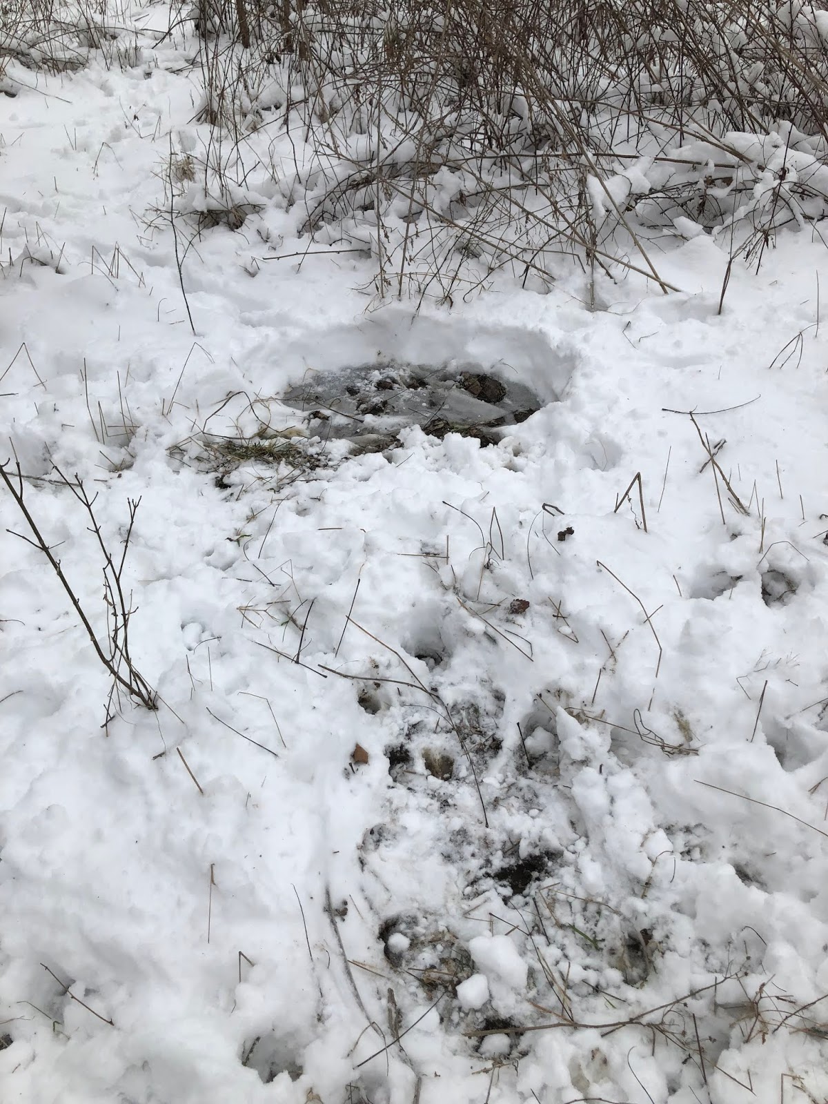 So why didn't we see any bunnies today? Our best guess is that the snow might be too deep or we were not in the right spot or the coyotes beat us to them. We had fun though!